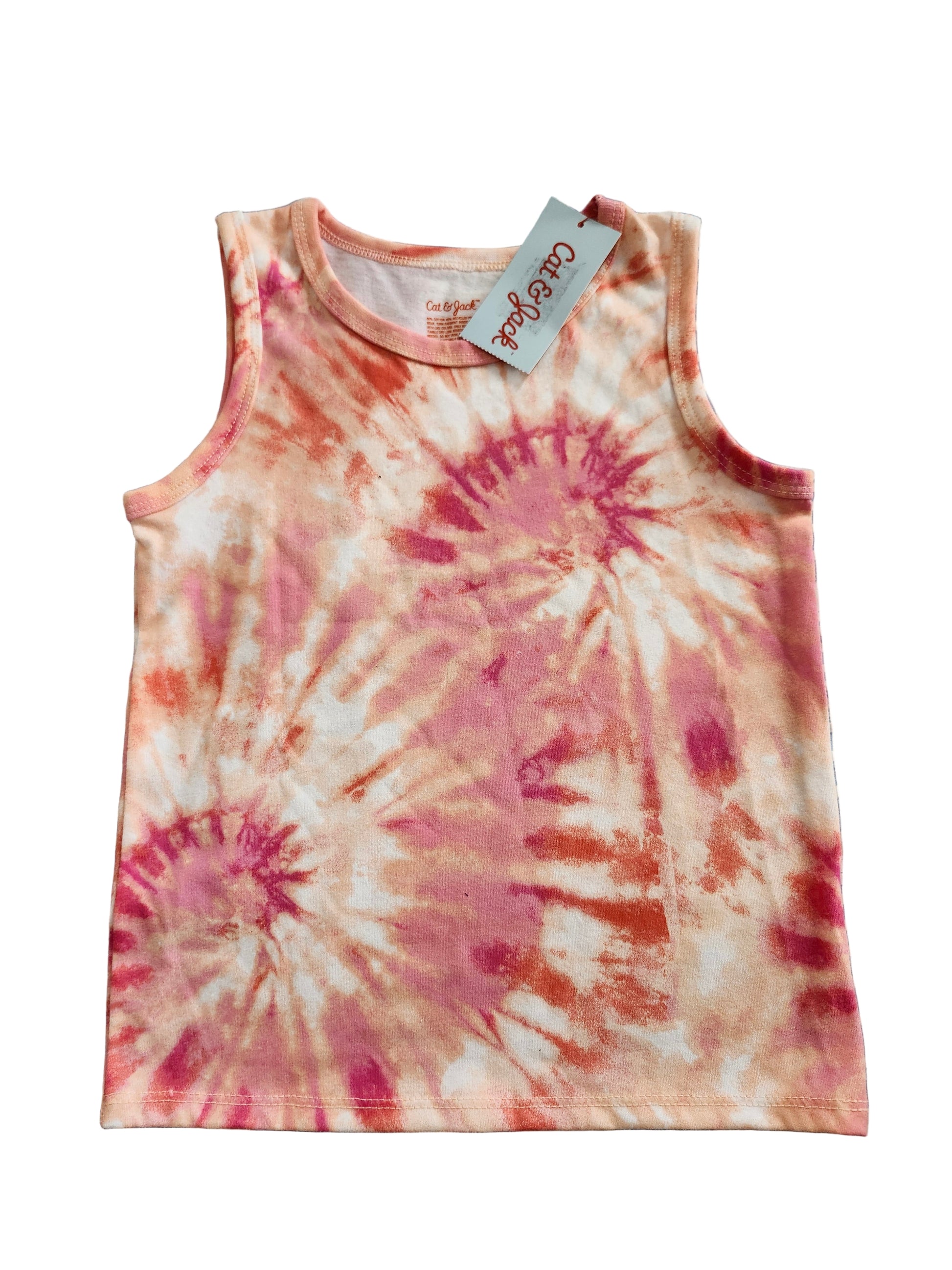 - 🎨 Sleeveless tie‑dye tank in pink and beige tones